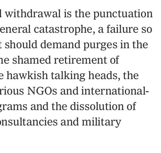 I didn't love Biden as a candidate. But even if he accomplishes nothing else in his administration than ending this war, I'll be grateful he ended up in office. It was a call that obviously needed to be made, but that no one else apparently had the fortitude and honesty to do.