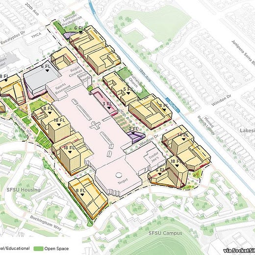 A large shopping mall is proposing to replace its 27 acres of surface parking with 2,900 new housing units and a new 'main street' with street level retail.