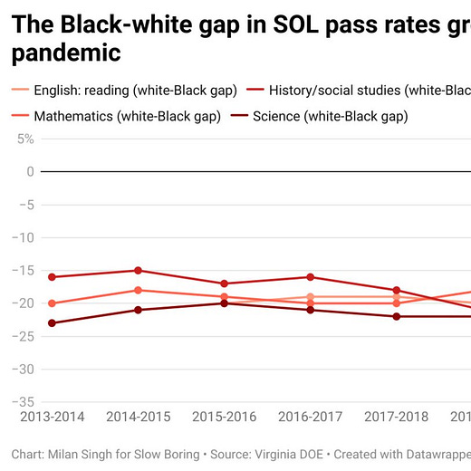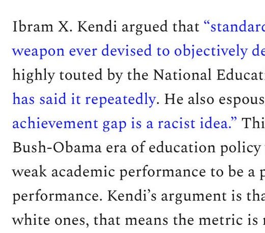 The upshot of these tends is that during a period when educators *talked* more about antiracism, racial gaps in academic achievement got much larger and the edu-left’s main response was to stigmatize efforts to measure that.