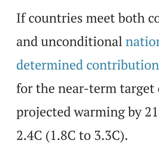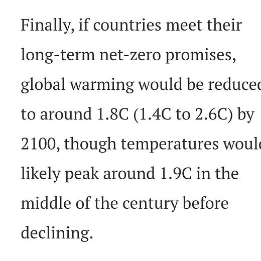 In other words, if we keep our promises, the world will not be destroyed by climate change in any meaningful sense of the term!