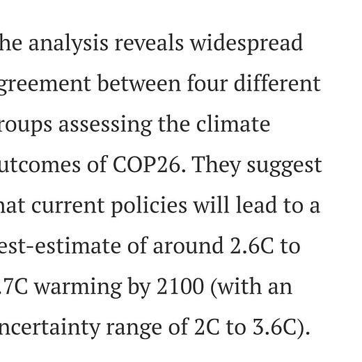 Our current policies "business as usual" put us on track for 2.7C of warming by 2100.