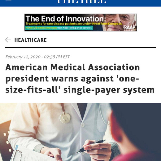 The AMA lobbies against Medicare for All, against strong versions of a public option, and against regulatory reforms that would help more patients get treatment.