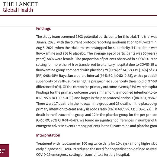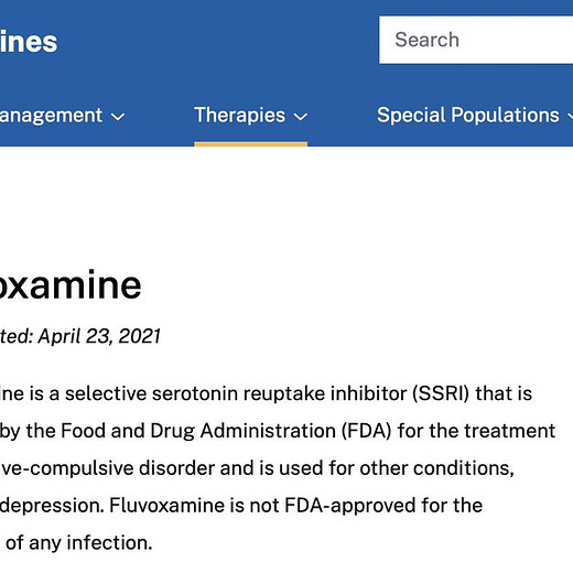 It's cool that the NIH hasn't updated its Covid-19 treatment guidelines for Fluvoxamine since April when a big study showing large positive results was published in the Lancet in October.