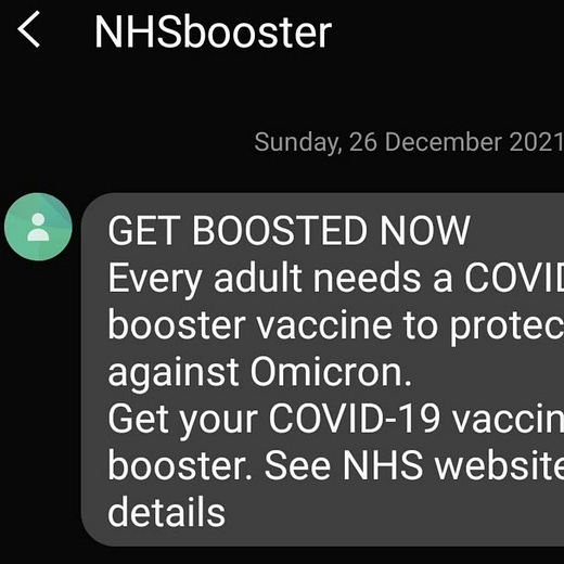 The govt is mass sending 'GET BOOSTED' text messages. Instead of linking, they tell you to 'See NHS website'.