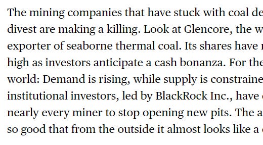 The coal market is booming. Prices are surging. And the companies that have stayed in the coal industry, despite pressures to divest for environmental reasons, are making a killing. bloomberg.com/opinion/articl…