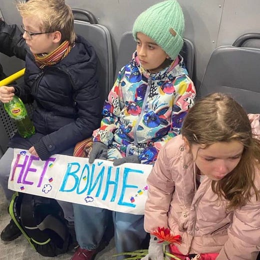 Kids detained for bringing flowers and signs to the Ukrainian embassy in Moscow with their moms.