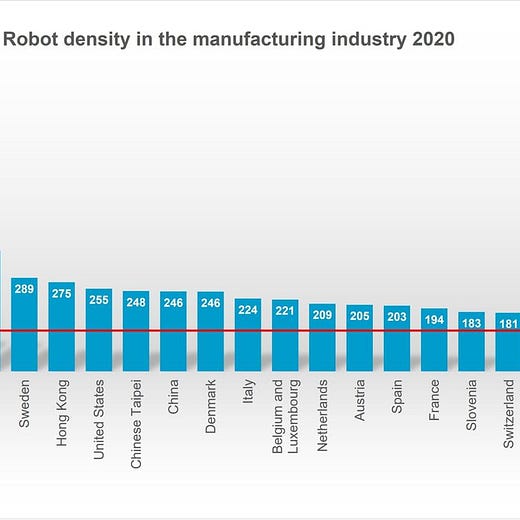 South Korea, Singapore, Japan, Germany, and Sweden all use more robots than we do.