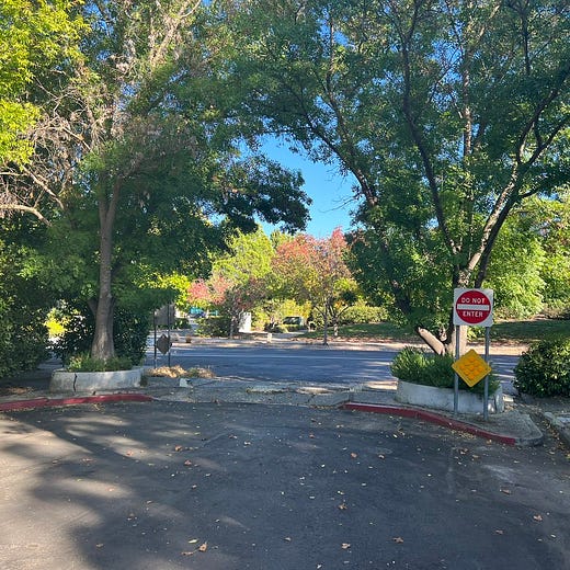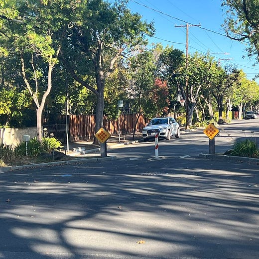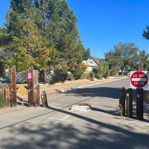Biking in Palo Alto today. Gotta hand it to them: They know how to create safe blocks for kids, pedestrians and cyclists by limiting through traffic by cars.
