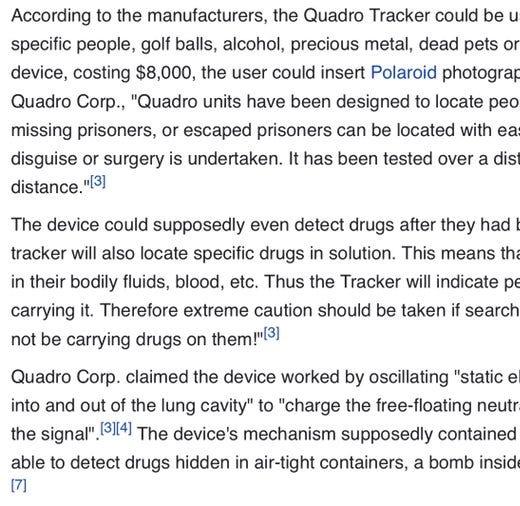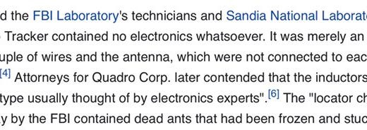 Thinking about the completely fake bomb/drug/criminal detection device that was sold for up to $8000 per unit to police and militaries the world over and was quite literally a useless piece of plastic full of strangely deliberately placed dead ants