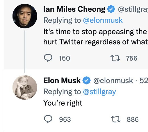 From ad tweep who knows: The drop off is mostly self inflicted. First: The CRO [@SEP] walked out Friday. She's trusted by the marketing community. So, Elon goes to meet agency heads in NY. The Twitter exec who runs the US walked him in and is a trusted partner at these agencies. https://t.co/GBAaQQiYKG