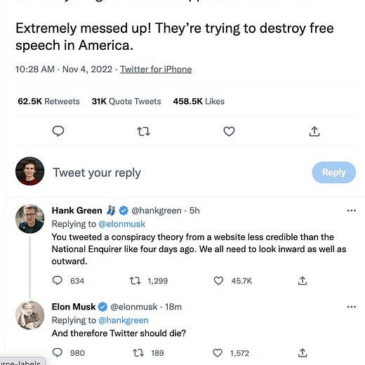 It's amazing that he (1) was gullible enough to think it was plausible, and (2) was careless enough to think tweeting it out so soon after taking over the company would be a good idea