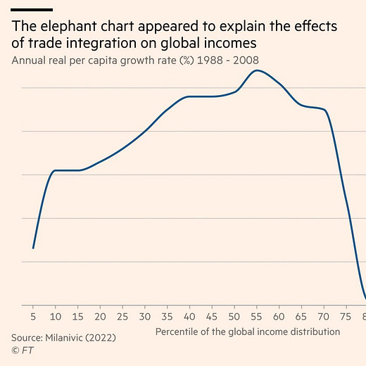Do you remember @BrankoMilan's Elephant Chart, revealing unequal rewards and the rise of the 1%? Since then, the elephant has lost its trunk. Since 2008, incomes of the poorest increased by 7% a year, the middle by 4-6% and the richest by less than 2%