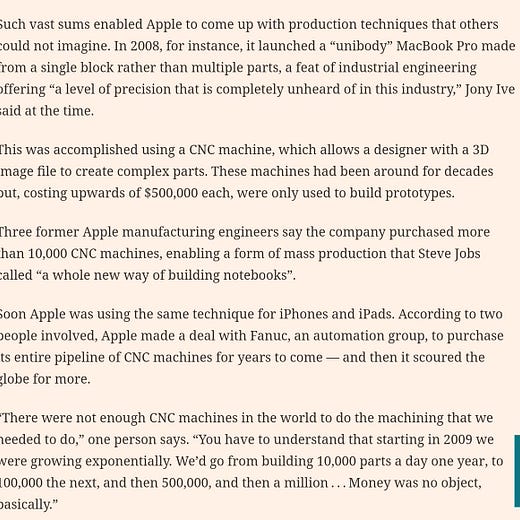 Unbelievably interesting story about how Apple built supply chain excellence in China. I've never been so in awe of engineering- on.ft.com/3WhMCqY via @FT
