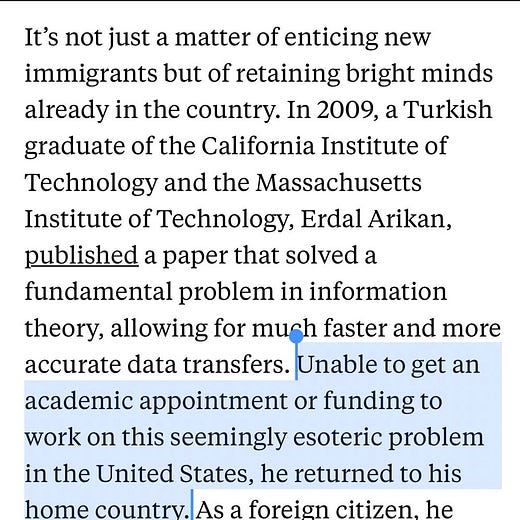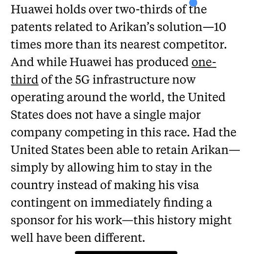 Just thinking about how the United States could have been the world leader in 5G technology instead of China if we had just given *one guy* a green card when he needed one