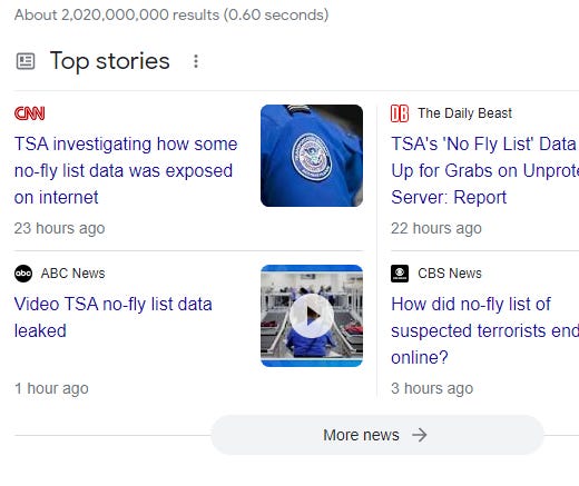 Someone leaking the entire no fly list on this fucking blog is the funniest thing I've ever seen