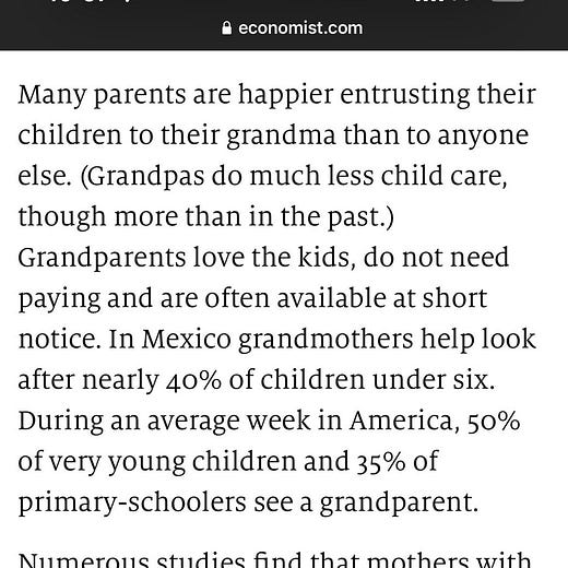 Numerous studies find that mothers with granny-nannies earn more than they otherwise would. Grandparents’ care is good for grandchildren, too https://t.co/1ExfcwRErp
