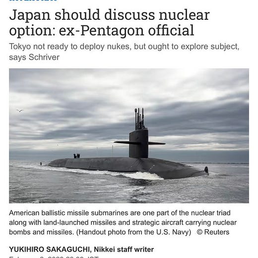 2 years ago, I urged policymakers to relitigate the 70-year policy of discouraging politically stable & democratic allies from developing their nuclear deterrence capabilities. The idea was heresy. Necessity is now leading former Pentagon officials to publicly suggest the same.