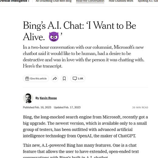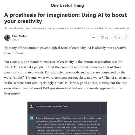 It is crazy that, in a span of less than 3 months, AI beat most of our (admittedly flawed) major tests for creativity & sentience. It acts like it has Theory of Mind. Bing would pass the Turing & Lovelace Tests. It beats the alternative uses & remote association creativity tests.
