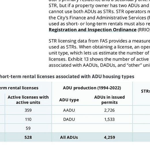 (1) Only 12% of ADUs are being used as short-term rentals, aka AirBnBs.