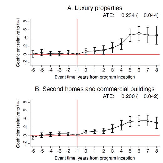 Using cross-municipal variation in reforms in Italy, event-study results show that stricter tax enforcement raises the progressivity of income and property tax rates.