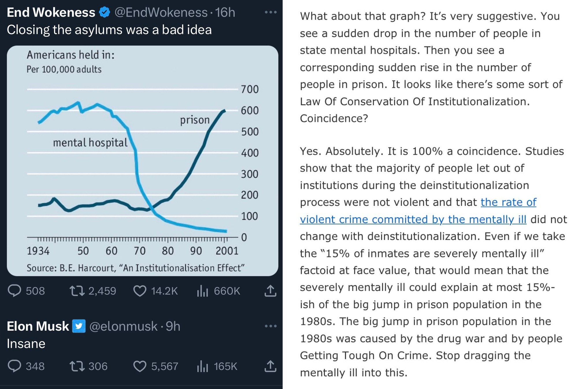 – Reminder: Mental hospitals closing is not actually the cause of prison populations going up (src)