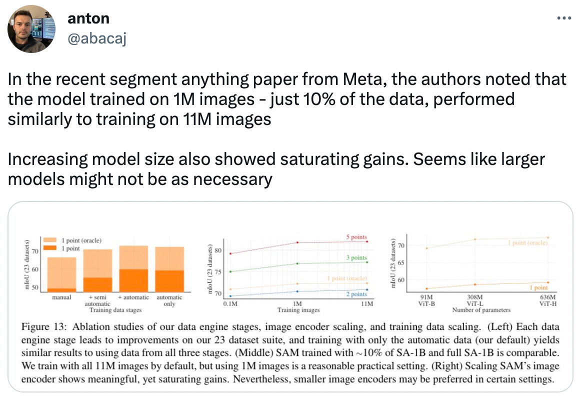 It's worth noting that this isn't as applicable to Language Models, where it's clear they' still get better with more data.