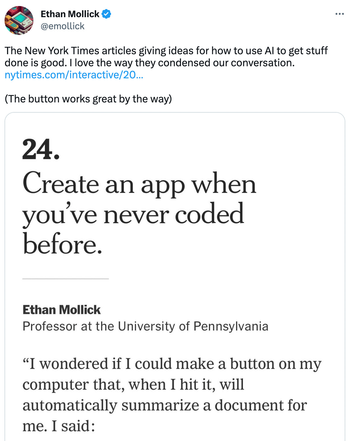 If you're looking for ideas for things you could be doing with ChatGPT right now, this is a great article.