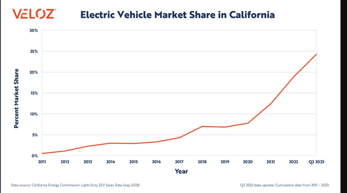 – EVs make up a quarter of cars sold in California, 15% in Washington and Oregon. (src)