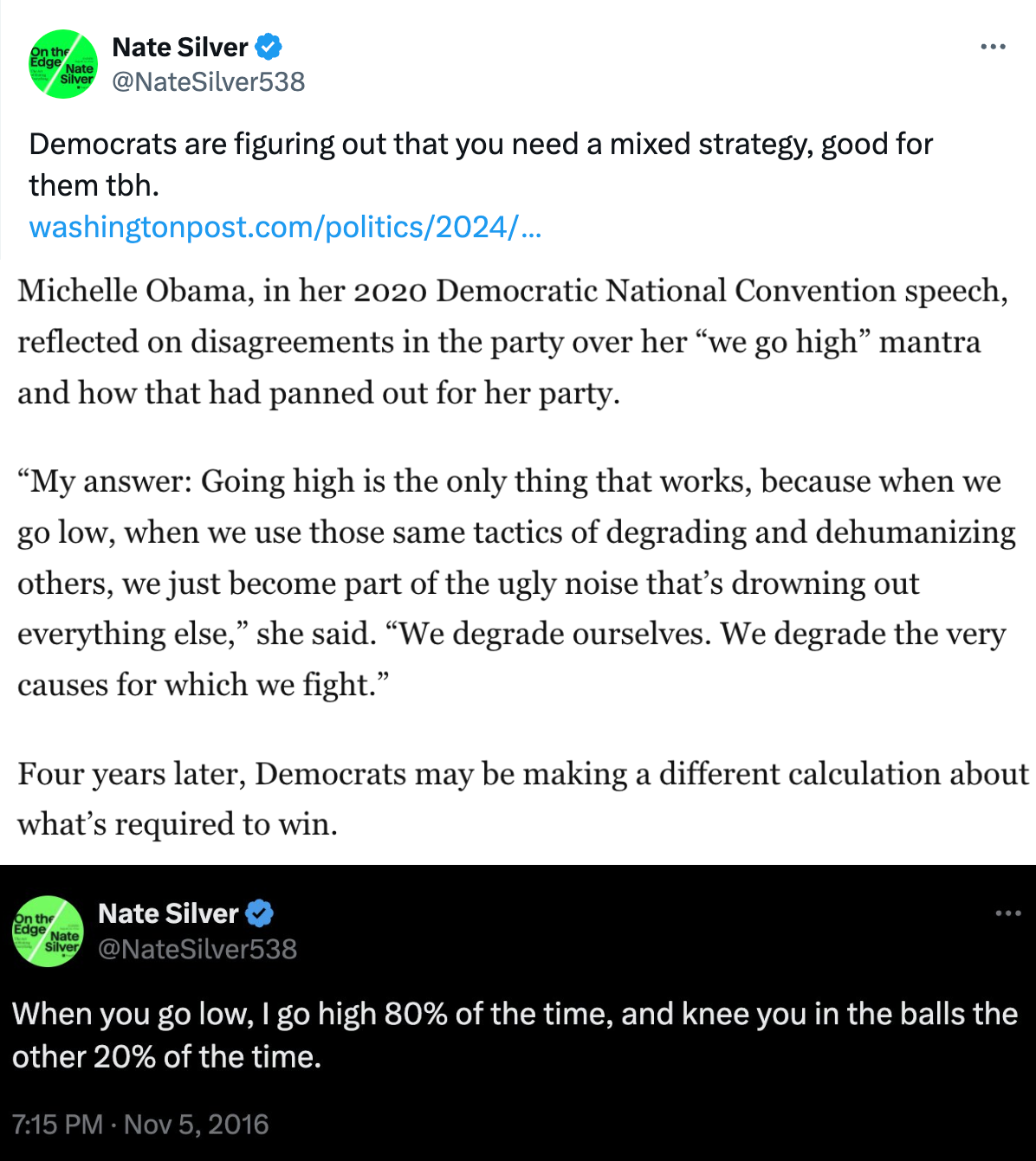 What a great opportunity to read up on mixed strategies in game theory in order to understand this joke. It's not even very complicated! Also, I read recently that one of the upsides of the couch joke is that while it's very online, Walz making the joke very subtly in a way that a normal person might interpret as just calling JD Vance lazy. And the to explain why it's mean and untrue, you have to explain a bunch of stuff that seems crazy.