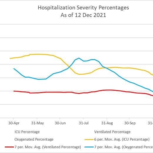 The second graph has the most interesting news, percentage of patients requiring ventilation dropped a ton, the most hopeful possibility is that Omicron might act as a kind of variolation. It's still too soon to say for sure, but more signs seem to be pointing to Omicron being milder.