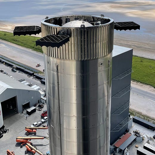 They intend to catch this thing by those little fins at the top. Wild. Also, they installed 29 engines on it over one night, “typically in the rocket business, it takes a few days to install a single engine”