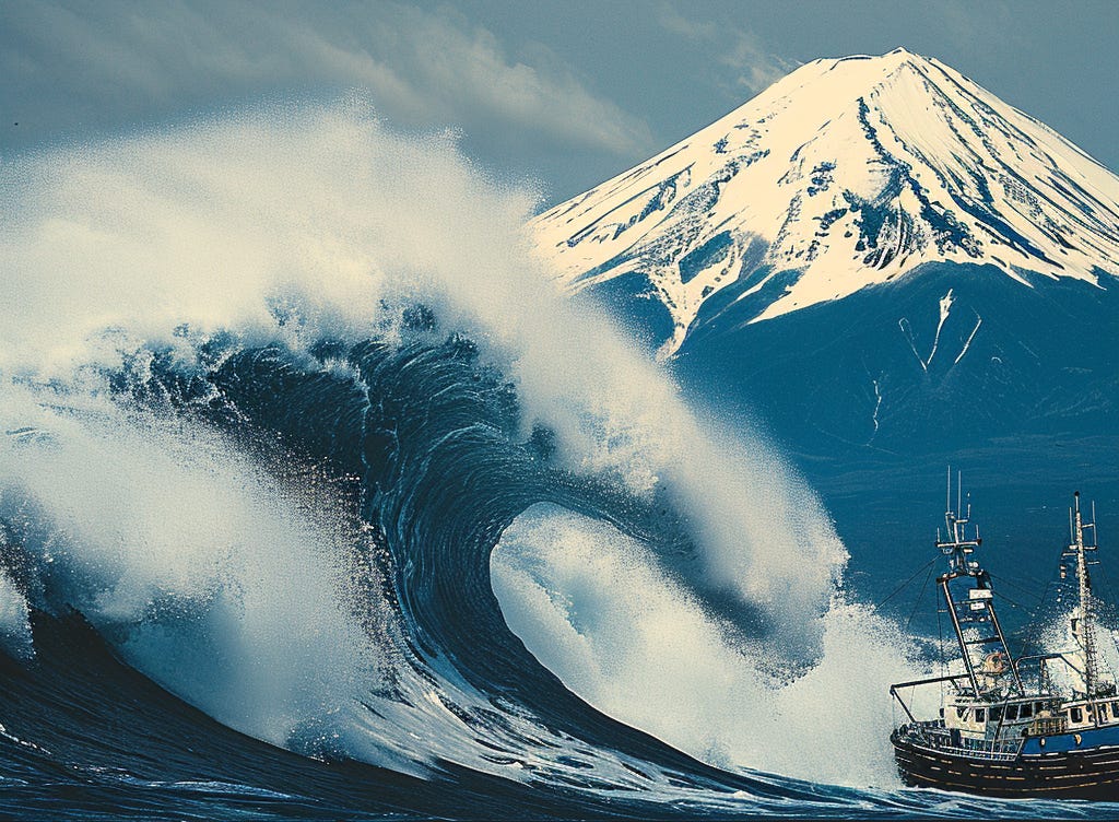 I really didn’t like their Jatte or Wave, but to do better I think I’d need to bring thees into Photoshop. The hardest part is actually getting the overall parts of the picture to be in the right place and to be the right size. And don’t even try to ask Midjourney for Mt Fuji anywhere in The Wave, because if it hears “Fuji” it’s instantly the whole image.