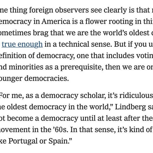 Moving the democracy start date to the 1960s really clarifies things.