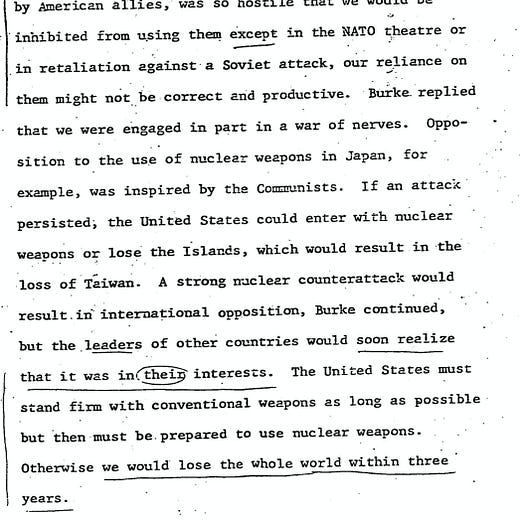 Planned to move straight to nukes, "No point in planning for prolonged conventional operations since they would not succeed", yikes.