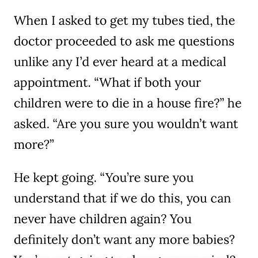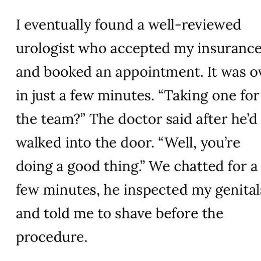 Here's the full article about getting tubes tied, and here's the one about the vasectomy, although I think you get the idea from the quotes above.
