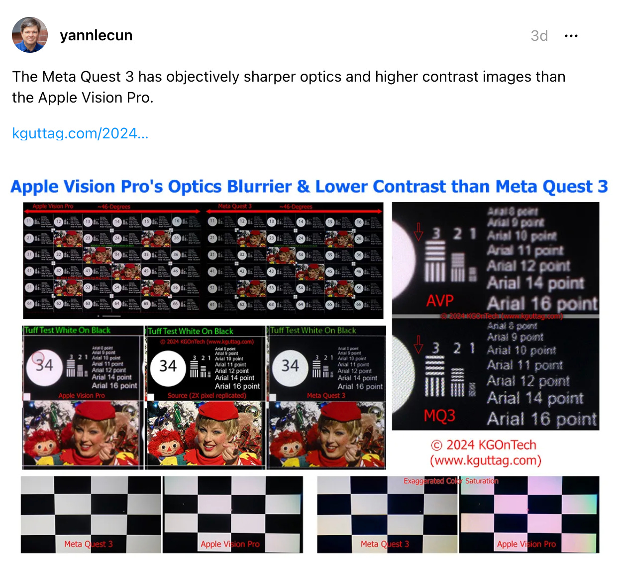 This article was so cool! It goes into lots of detail, but the simplest explanation is that to get rid of the 'screen door' effect in the Vision Pro, they set the lenses in a way so that the entire screen would just be a tiny bit out of focus. This has obvious downsides.