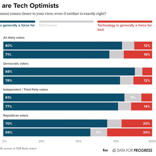 If you're wondering about the chart, "Messaged" means they were told both the positive and negative arguments about technology. I’m pretty sure that “messaging” on any subject moves people to the center.