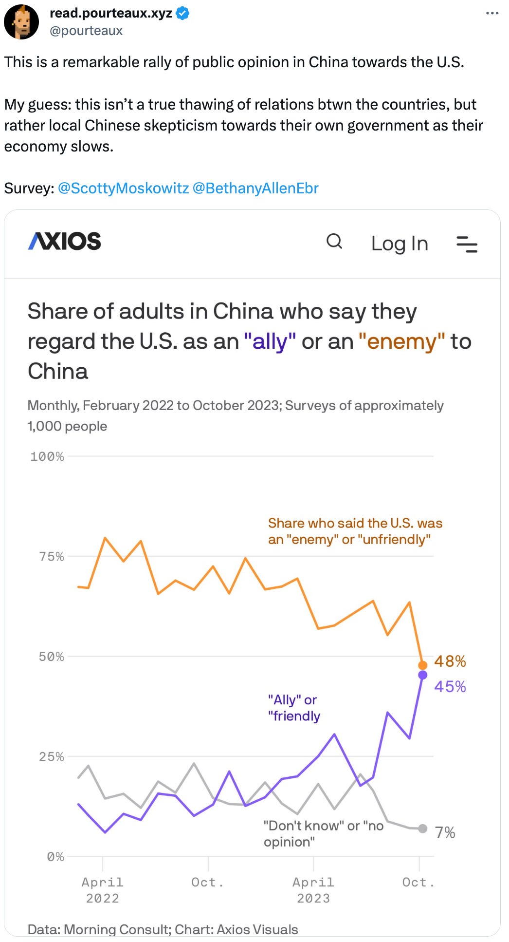 This seems extremely extremely hopeful. Polling in China seems like it would be very difficult, but given that I'm all the more surprised by this result.
