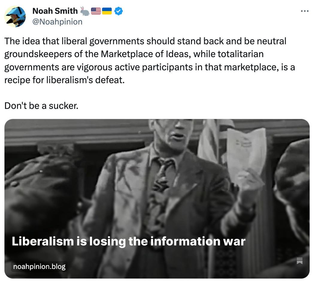 From the article "We are all somehow expected to sacrifice hours of day to do thankless, unpaid work pushing back against illiberal narratives spread relentlessly by people for whom spreading those narratives is a full-time salaried job." If you haven't seen the pictured old film clip before, it's a anti-fascist short from the 1940s, surprisingly resonant even today.