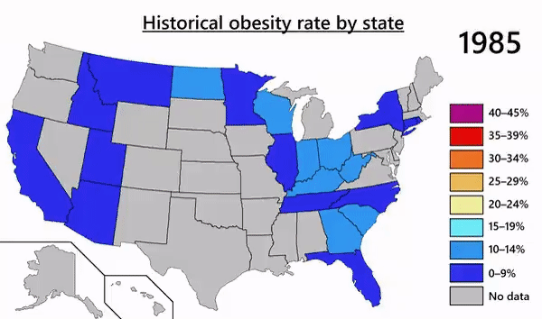 Obesity rates in healthy states now are worse than in the least healthy states in the 80s.