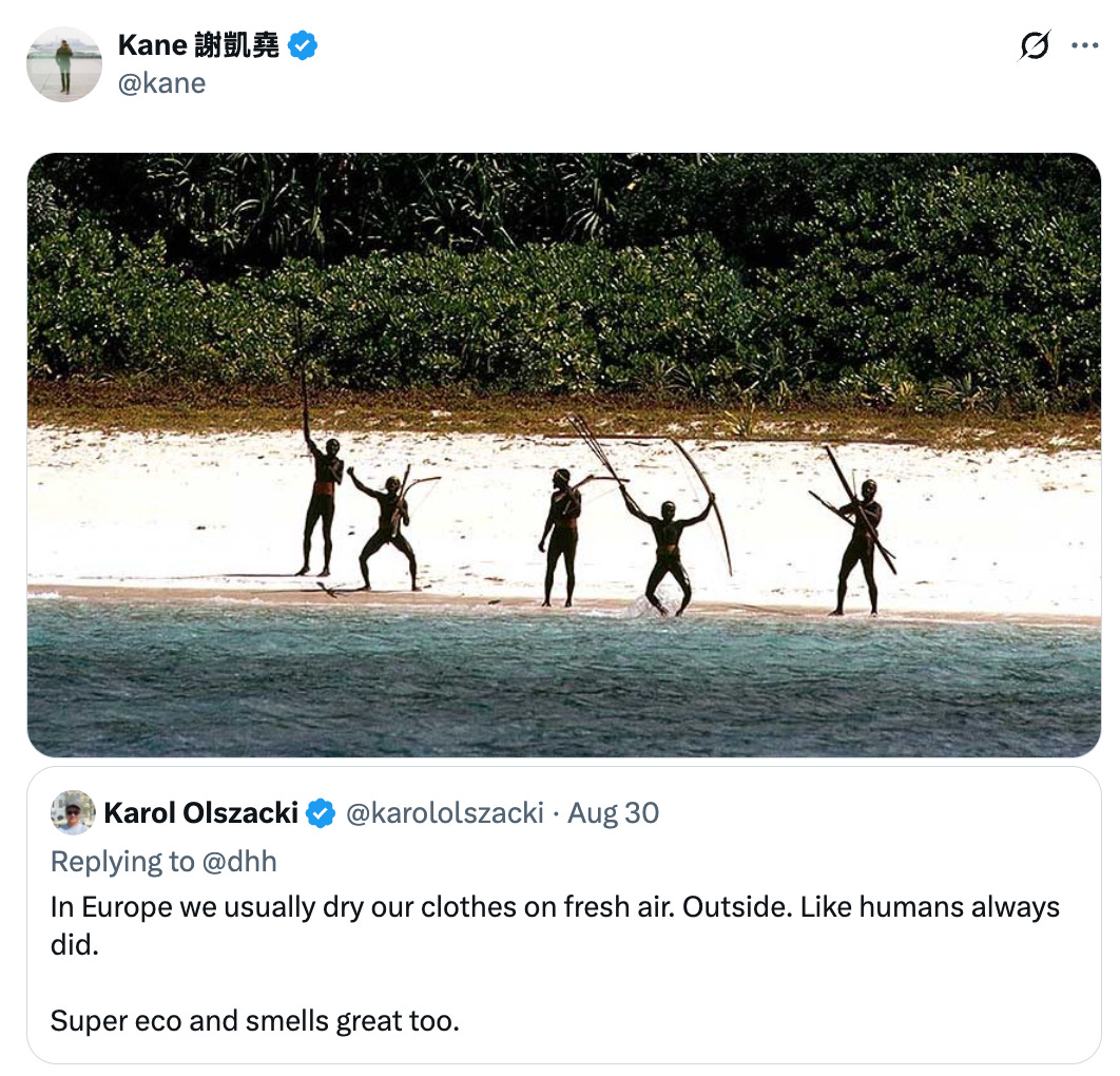 I can imagine romantic attachment to line-drying clothes _in the abstract_. But I can’t imagine actually doing that activity every week and saying “ah yes, it’s dumb to try to automate this”.