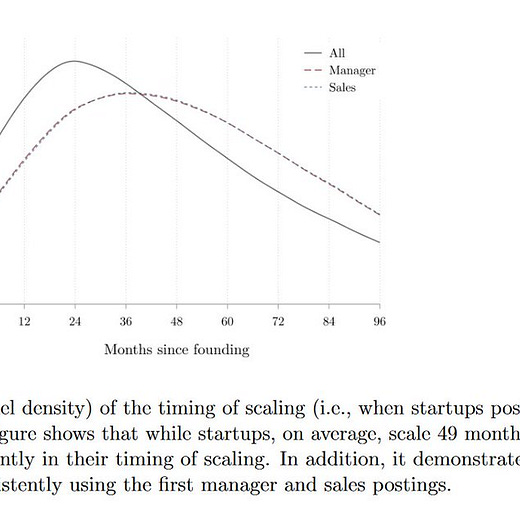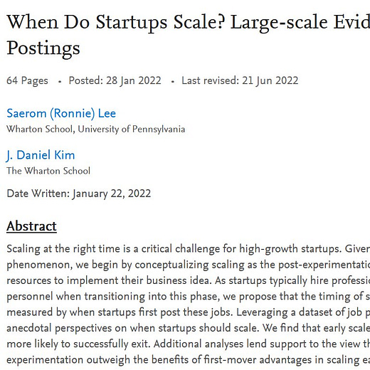 From the extended thread, the idea here is that larger companies are less capable of experimenting, so it's good to experiment before scaling up.