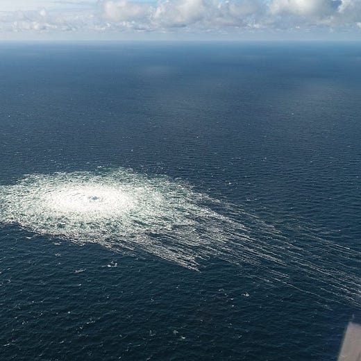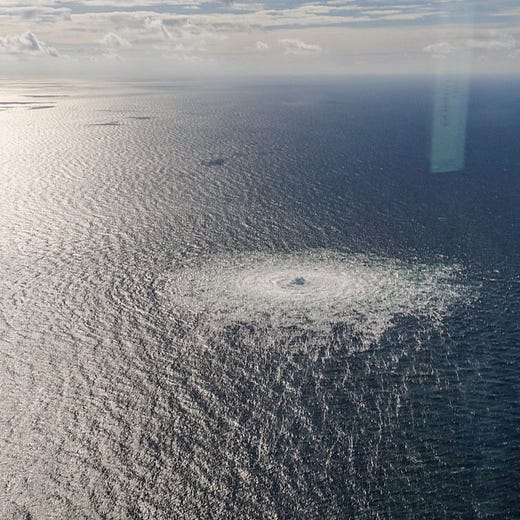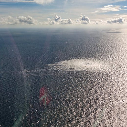Russia appears to have blown up the Nord Stream pipeline as a threat against the pipeline that was just built between Norway and Poland (they're also threatening other sources of gas in Europe). To give you a sense of scale, my understanding is that the circle in the photo is a kilometer across.