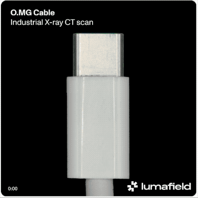 Can you tell from the CT that something is wrong? High end usb-c/thunderbolt cables like Apple's have chips in them, so that's not bad on it's own. My read was that the easiest to see oddity is the component off by itself only connected by tiny wires, that's the antenna. Check out the thread for the full breakdown.