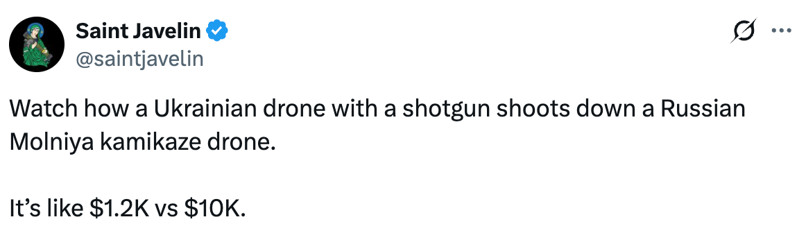 It's actually better even than that, because the Ukrainian drone is reusable.
